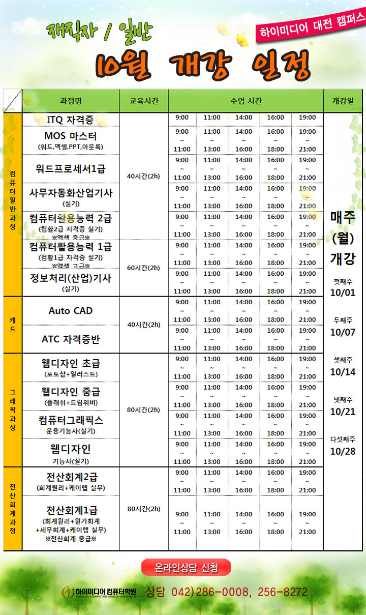 [정규개강]10월 정규강의 일정 안내입니다.