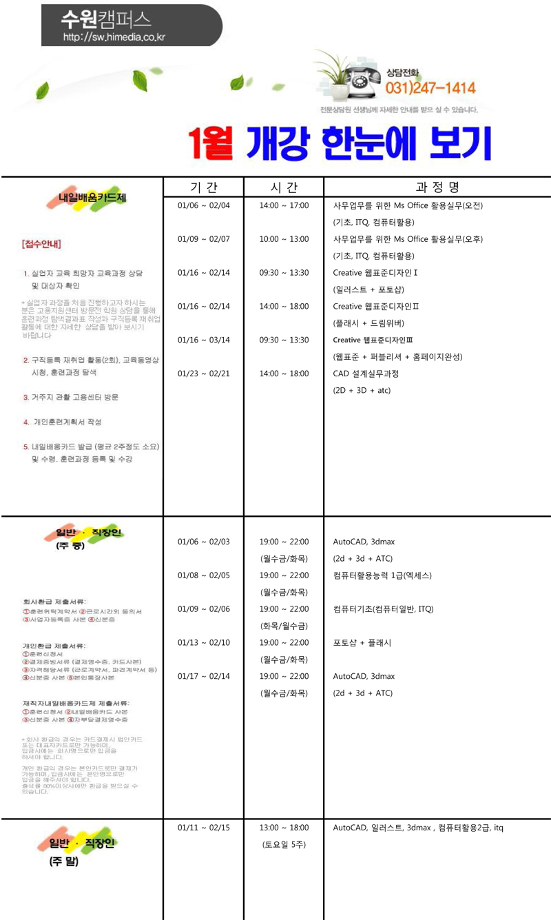 1월 개강 한눈에 보기