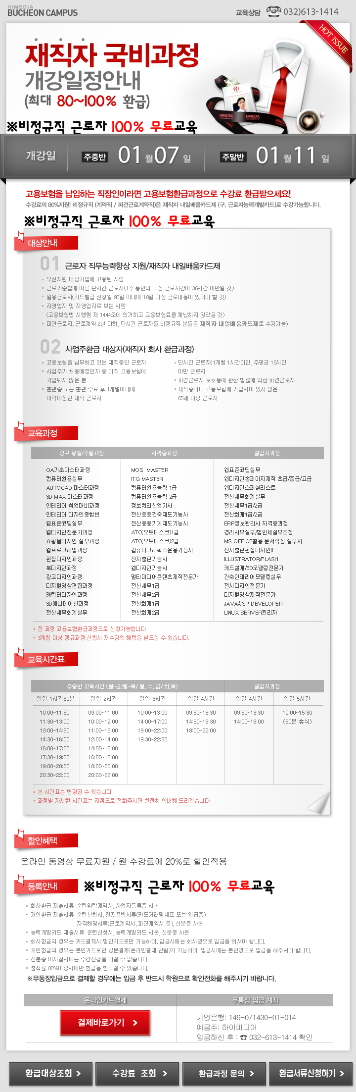 [공지사항] 2014년 1월 재직자 환급 과정 개강일 안내